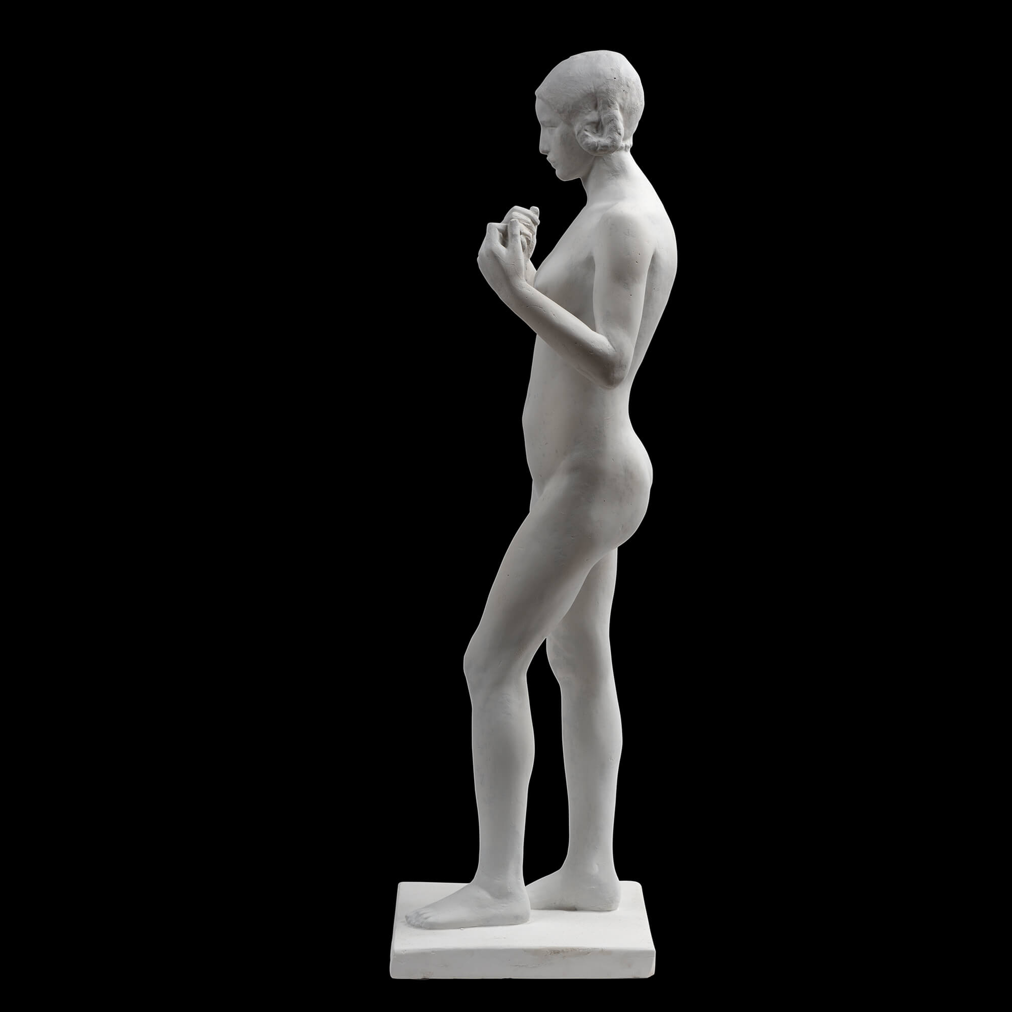 Cette œuvre en plâtre témoigne de la sensibilité de l’artiste pour le corps féminin, saisi dans toute sa simplicité et sa présence silencieuse.
